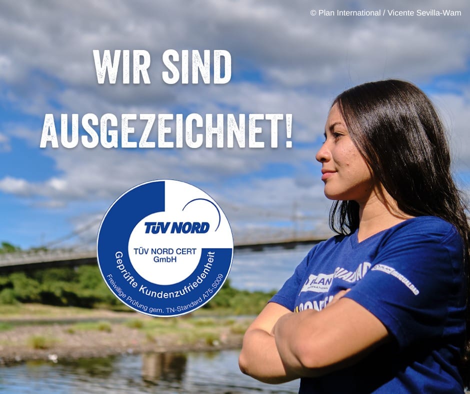 Auch der TÜV Nord ist von der PLAN Arbeit überzeugt: Im Geltungsbereich „Zufriedenheit der Paten und Spender mit dem Service und Leistungsangebot der Hilfsorganisation“ erreichte Plan International die Gesamtnote 1,5 und eine Weiterempfehlungsquote von 98 Prozent.